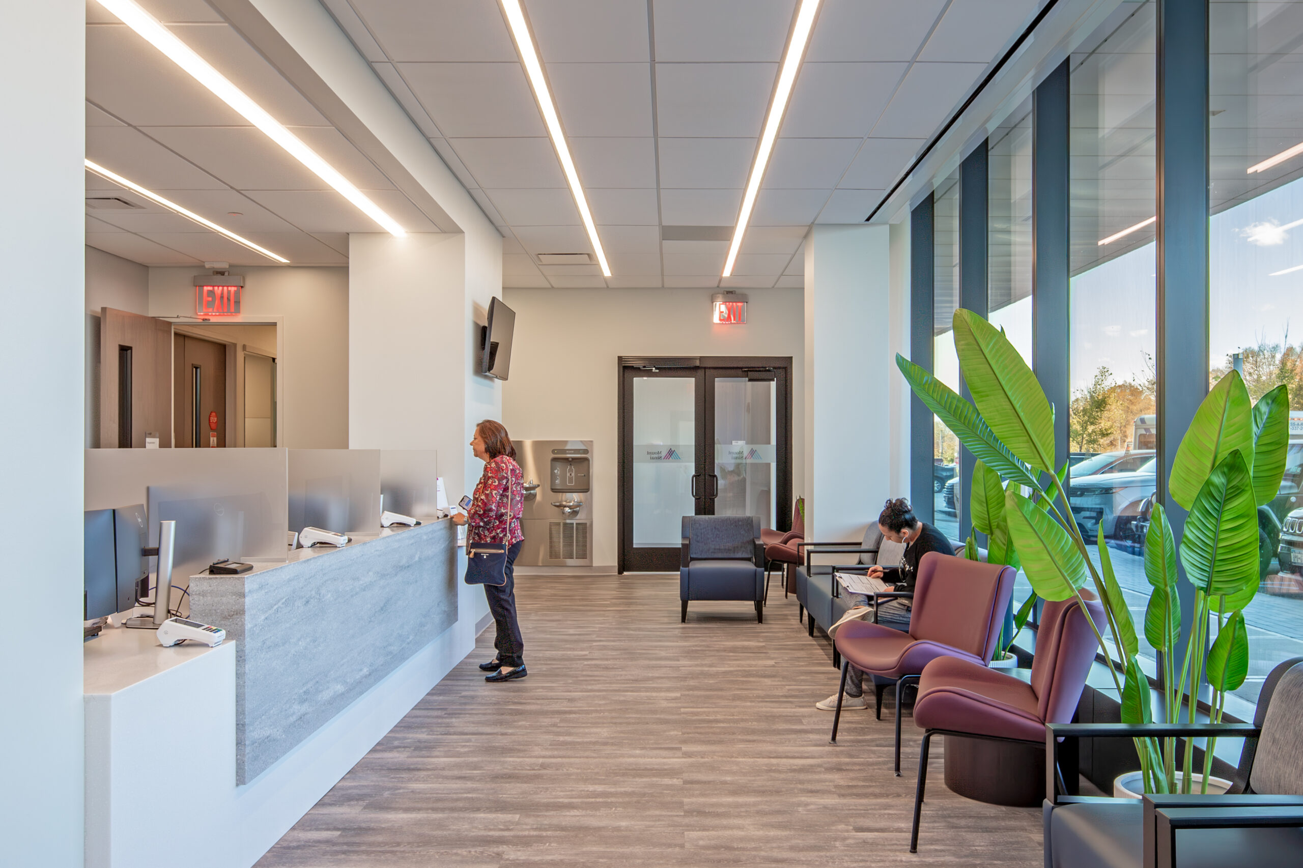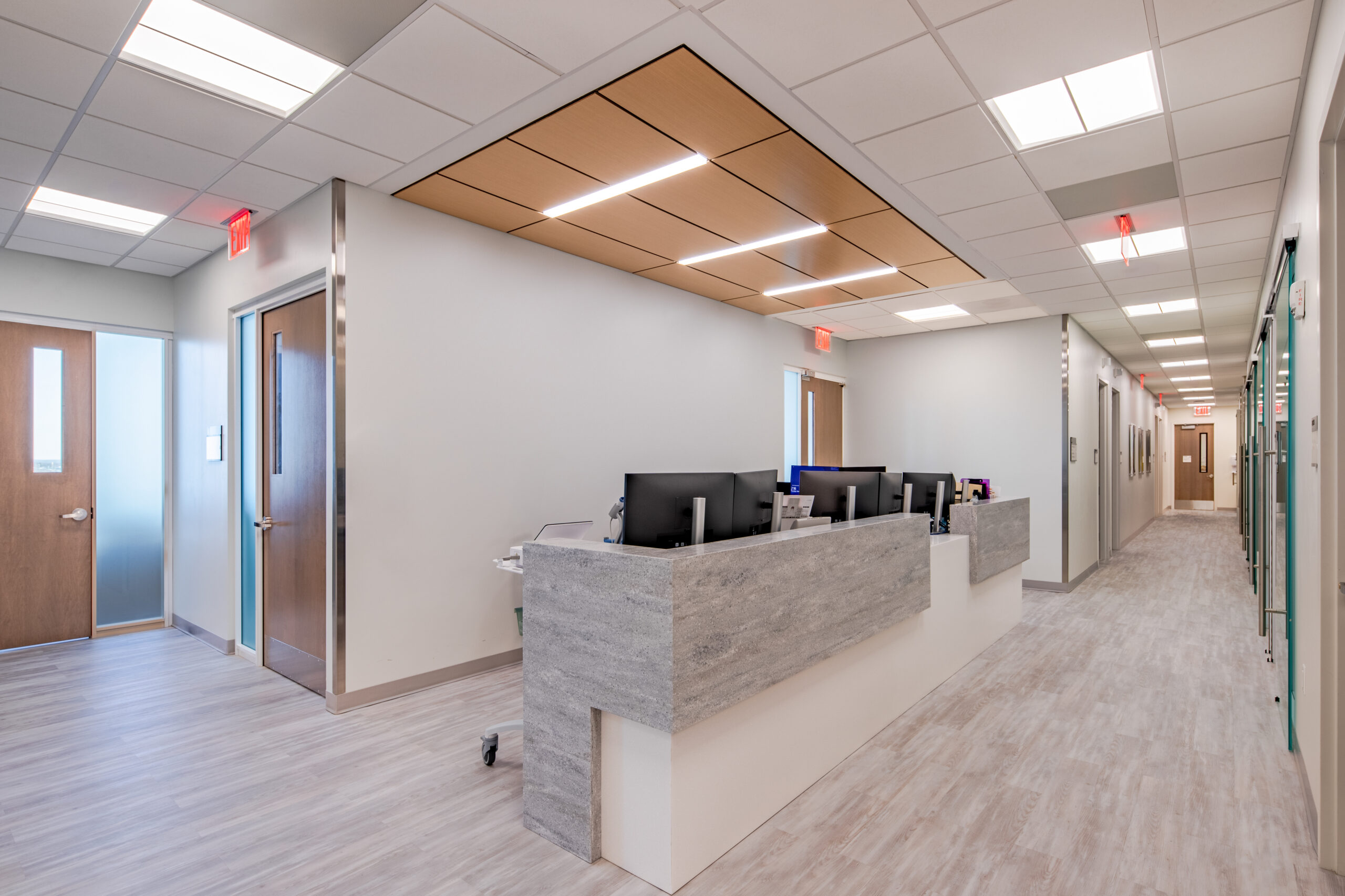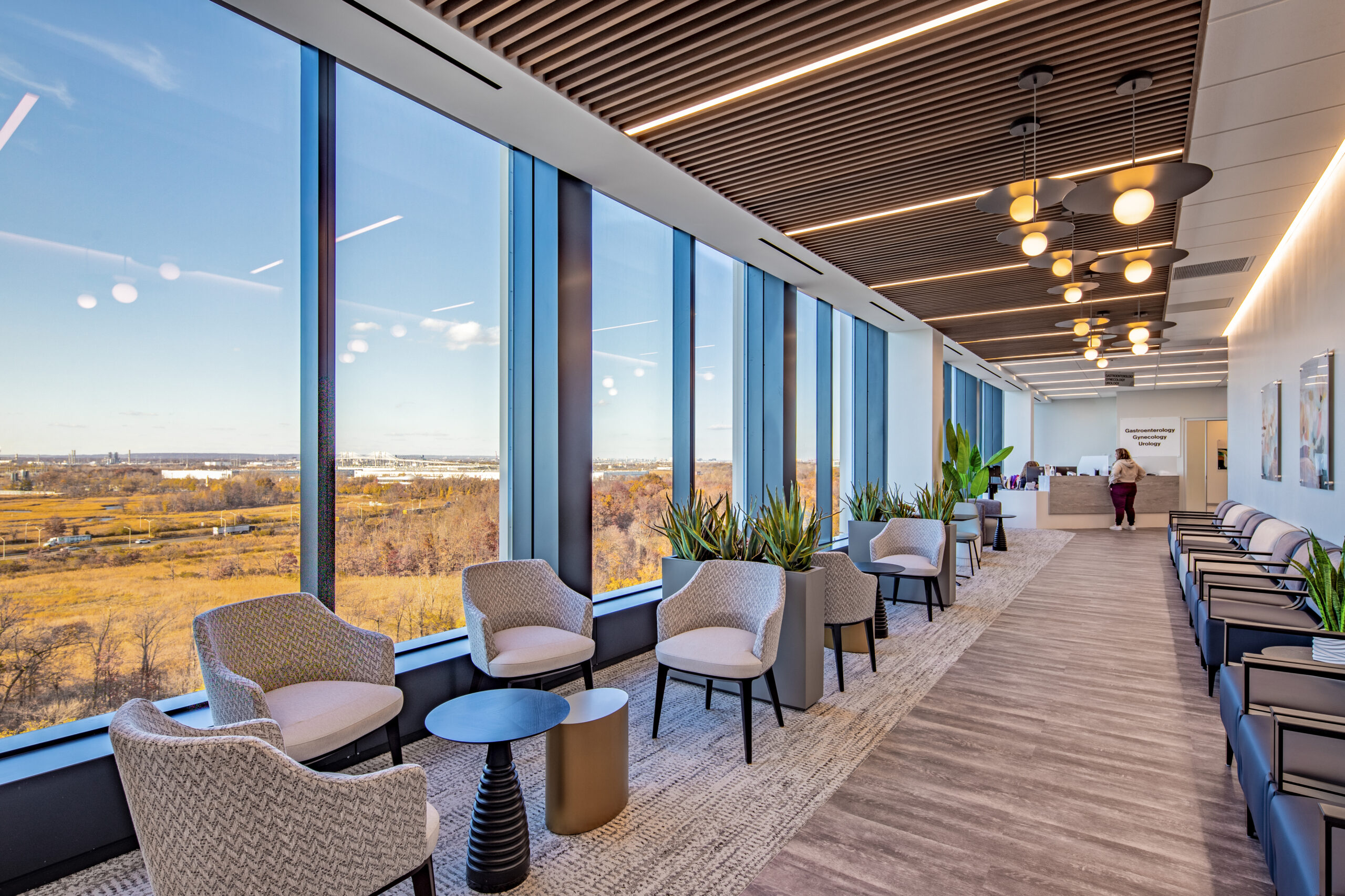 Mascioni & Behrmann was selected to design both the first and eighth floor of this multi-story healthcare facility. The approach for the design was to create a welcoming and comforting reception for all patients who visit the space. The different Programs are grouped in order to create easy flow for both patients and staff throughout the day and promote an efficient and effective working environment. The incredible views from the eighth floor make the waiting area an extra enjoyable experience and the entrance was designed to amplify it.
